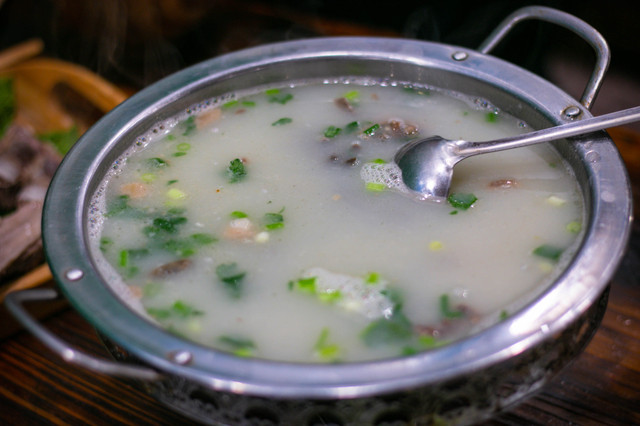 铁锅炖:在内蒙,牛羊肉是主要食物,也是不得不吃的美食。汤汁是牛骨煮的,含有煮烂的牛骨肉,原汁原味。寒冷冬日喝上一碗热腾腾的牛骨汤,大口吃牛肉,配以各类蔬菜为辅菜,加特色大饼为主食,人生美好不过如此~
