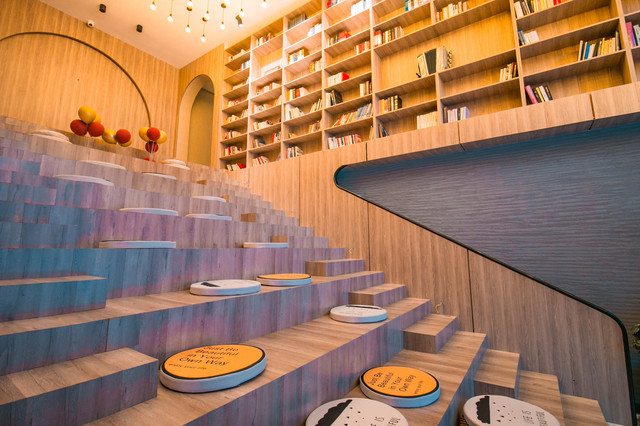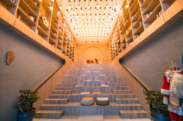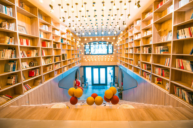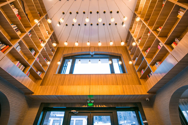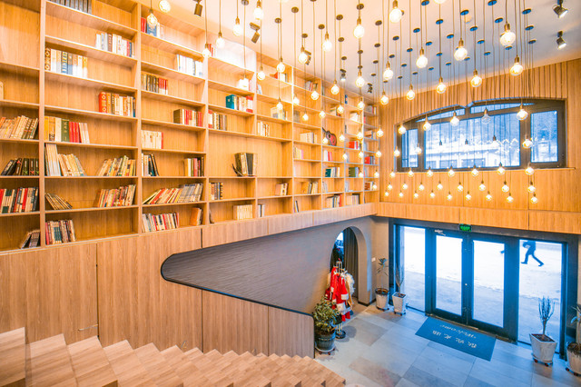 进门便是阶梯型的书店,两侧摆满了书籍,暖暖的灯光,在寒冷冬日里,遇见这样一间民宿,瞬间让心里有了幸福感。