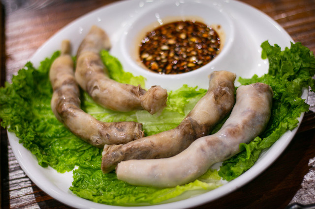 血肠肉肠拼盘:非常双面的一道菜,喜欢的人会非常喜欢,不喜欢的估计看到都难受。