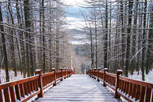 在白狼峰景区的树林里还隐藏有木栈道,两边一排排高耸入云的白桦林和落叶松,不时可以看到雕塑鹿,行走在木栈道中可以尽情体验大兴安岭森林的独特魅力,做一只可爱的精灵,融入到白桦林中去。