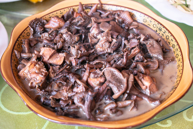 小鸡炖蘑菇:非常典型的菜品,几乎每餐都有,味道都差不多,蘑菇以野生蘑菇居多,来兴安盟必吃的一道美食。