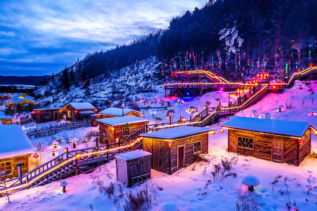 每当夜幕降临时,华灯初上,阿尔山雪村都会变成冬日里的童话世界。比起雪乡,这里少了几分喧闹,却多了几分淳朴与烟火气。