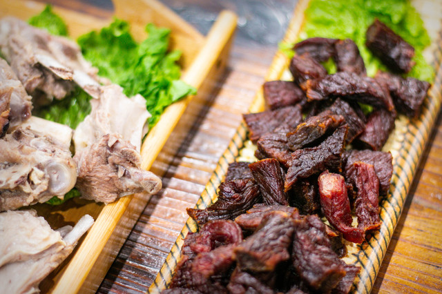 牛肉干:当地均以风干或烘干为主,以便保持牛肉的原汁原味。有的很硬,有的很软,看个人喜欢的口感,也有真空包装的,大概在130元/斤。