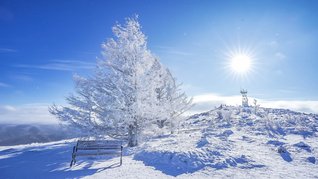 在白狼峰最大的特色莫过于一定要去封顶,海拔1511米的白狼峰,峰顶有200公顷的冰川遗迹,此外,还有“大兴安岭”立碑、椅子,可以合影打卡到此一游,仿佛站在这里,望着无边际的林海雪原,不禁让人感叹,冬季的阿尔山真的是美得无法言语。如果是夏天的话,也可以来这里看日出,相信也会是一次非常浪漫的感受。