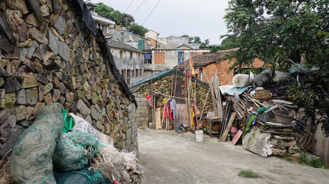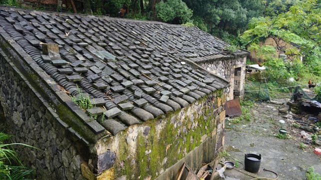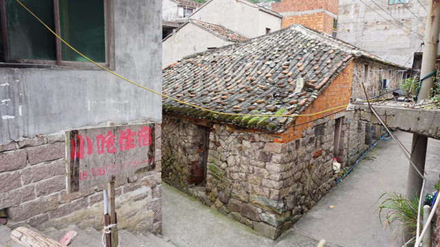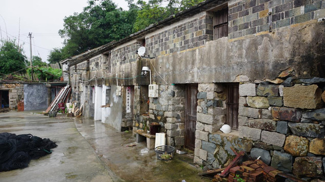 过去海岛村庄的建筑都是用花岗岩切割成的大石块垒就的方方正正的小房,叫作“石厝”。老房子坚固低矮,结构简单,缺乏装饰,强调经济实用。房瓦压石是为了防台风的需要。