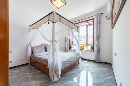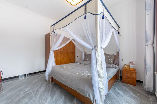 室内的生活用品设施全套,在这里生活的每一天都是圆满方便的,轻纱幔帐的宽敞房间附有别样的情调,每间都有30平米以上的面积。