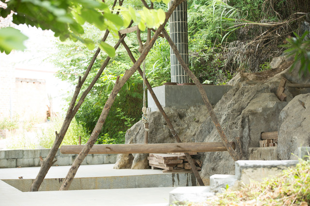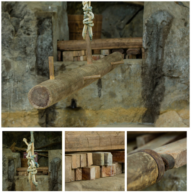 大筒木重达120斤,通常需要2人同时操作才能完成整套土榨花生油的流程。两人通过将大筒木摇起,在对准石面上的木块不断的进行撞击敲打,经过强大的撞击使木块间摩擦升温,达到油品温度后便能产出花生油。