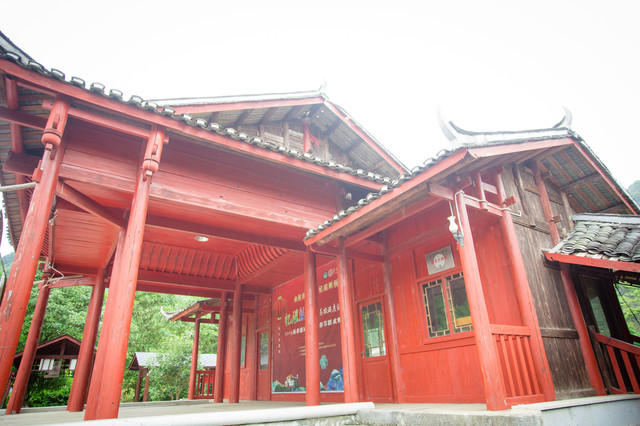 鼓岩书院背靠大山,耸立在村庄的后山中。黝黑的木墙青瓦与飞檐墙角仿佛一幅简单的素描化,结构精简却凸显着不凡的历史。书院沉淀着岁月的痕迹,古朴而典雅,像是一个沦落村野却依然掩盖不住姿色的贵族少女,弥漫着风情韵味,那每一扇窗与每一根柱都彰显着明清时代的风采。