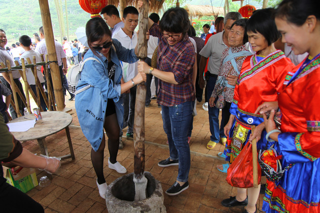内旦村的土榨花生油已有上百年的历史,是内旦村的祖先们在一次机缘巧合下发现了摩擦冲撞能产生能量,于是把这个方式运用在了榨花生油上。为了能更好地为村民们生产更多的花生油,1959年村民们再一次运用聪明智慧,在原生石山上一敲一打地建成了庞大的木榨花生油的石具,并把土榨花生油的方式进行了改良,形成如今的大筒木撞石榨油的样子。以原生态有机肥种植的本地花生为原料,再加上土法榨出来的花生油,香味醉人呀!