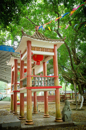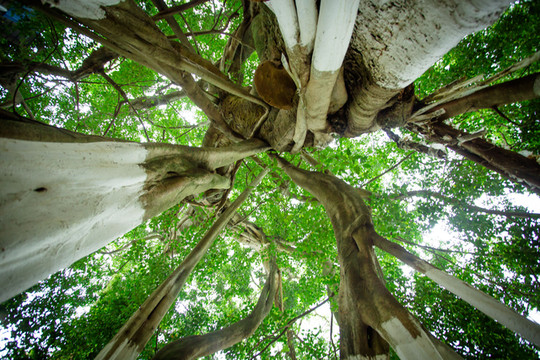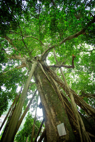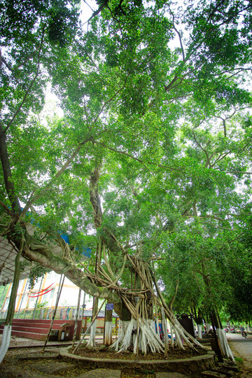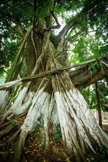 从民族团结长廊出来后,一下子就被耸立在村庄中间枝叶繁茂的两棵古榕树吸引。古树的树干粗壮得圆桌,斑驳的树皮像老母亲的手,四周生长着细细的树根连接着古树,仿佛似孩童般在搀扶着老母亲。古树老母亲在不断的给予着身上的藤蔓孩子养分,是它们长满了翠绿的叶子,看上去生命力强盛,“为母则刚”说的大概就是这样了吧。