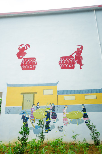这里的村民建房都很有特色,在墙壁上画满当地的文化色彩,把村庄里面的生活景象用艺术文化充分的展现出来,有“达努节、篝火晚会、长桌宴”等。不得不说,这里被评为文明、少数民族特色村寨真不是说说而已。