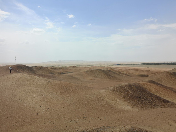 一大早来到长城第一墩,这是明长城的最西头,和遥远的老龙头相呼应,连接城雄壮的万里长城。这里的展览馆隐藏在地下,内容丰富,设计新颖,值得参观。嘉峪关关城是明朝开国大将冯胜修建的,而周边的长城沿线是百年后李涵主修。整个嘉峪关的防御体系西起祁连山的讨赖河(长城第一墩),东至黑山的悬臂长城,依赖天险,有宽度、也有纵深,可以说是军事和建筑的一大奇迹。展览馆还展示了两位William(分别是美国人和英国人)相隔百年的长城照片,同一地点、同一角度进行了对比,很有趣味和意义。展览馆向外延伸出玻璃站台,可以俯瞰荒蛮的讨赖河向东流淌。第一墩游览结束后,出发前往河西走廊下一站:张掖。