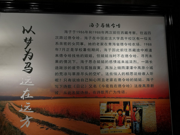 从茶卡盐湖西行,大雨滂沱中来到了德令哈(蒙古语:金色的世界),第一印象是一座规划整齐的工业小城市,人少车少。让德令哈出名的是诗人海子,33年前的今天,也是个下雨天,海子曾经来过这里,写下了著名的《今夜我在德令哈》,在这个城市留下了深深的印迹。这里有海子诗歌纪念馆,附近的公交站也以海子命名,巴音河从旁边缓缓流过。今天我在德令哈,从明天起,做一个幸福的人!