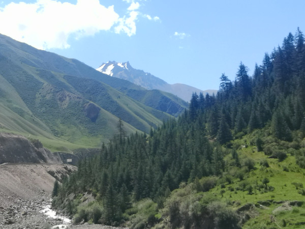 早上从七彩小镇出发,今天要穿越祁连山,目的地是祁连县。沿着新修好的G213首先到达肃南县,摆脱了前几日河西走廊的干燥、炎热,山里出现了草甸、瀑布和森林,行至山腰时,G213的隧道还没正式贯通,只能沿着老的土石路开到山顶,到达了海拔4150米的垭口,也就是本次旅行的最高点。放眼望去,层峦叠嶂、云卷云舒,牛群羊儿在山坡上悠闲的吃草,苍鹰在空中展翅翱翔,还邂逅了笨头笨脑的土拨鼠。过了垭口一路下行,就到达了广阔的祁连大草原,远处的乌云飘来,灰白色的雨柱洒落在山头,继续前行,进入了黑河大峡谷(黑河是国内第二大内流河),前几日大雨导致山体滑坡、道路中断,目前已经修好,再开几十公里终到达了祁连县城。这一路山路崎岖,但景色美不胜收,走走停停,近距离感受了祁连山多元化的地貌和气候。