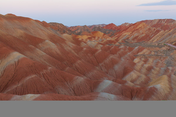 沿着连霍高速继续东去 经过酒泉就到达了张掖。张掖也是历史名城,北凉曾建都于此,古称甘州。下午参观了大佛寺(西夏建造)和张掖博物馆,躲过了烈日的暴晒,然后驱车一个小时后直奔七彩丹霞,景区7点停止售票,结果我们最后一分钟冲进了售票厅(酒店前台告知7点半),有惊无险。景区有4个观景台,需要坐大巴前往,4号台的景观最美,为了看日落,游客人山人海、摩肩擦踵,看了几眼后就匆匆逃离了。