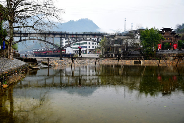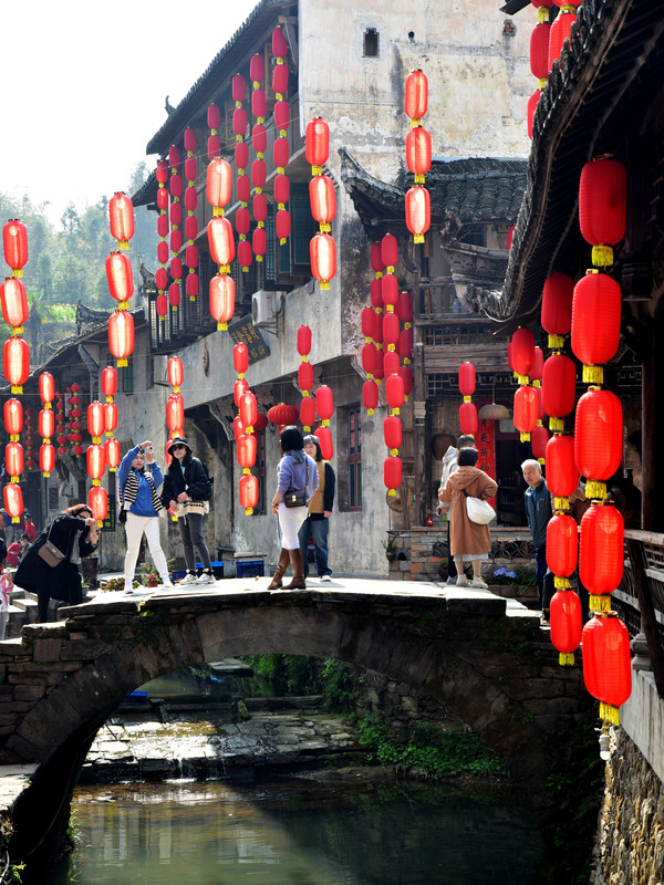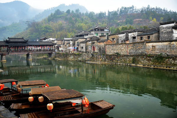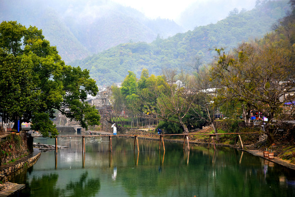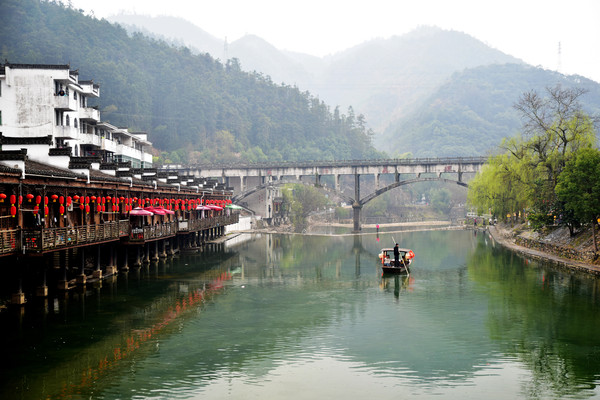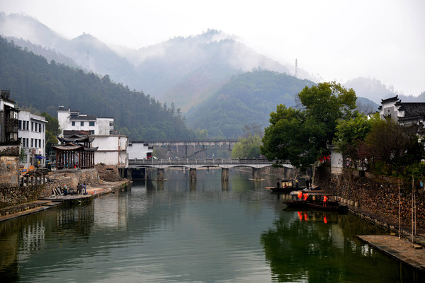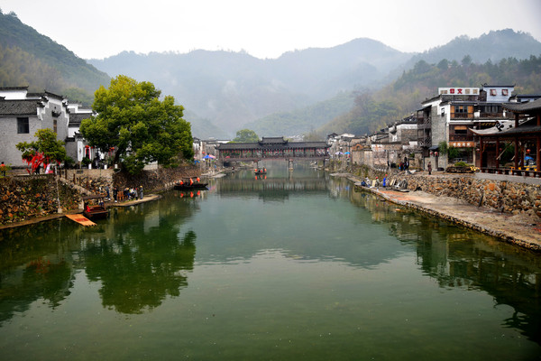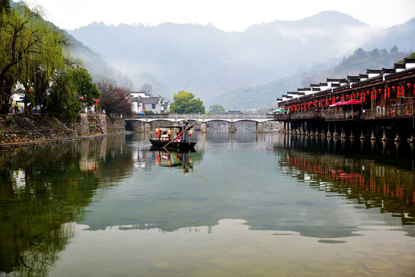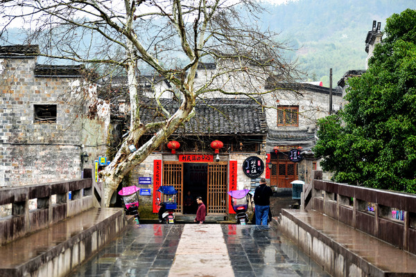 小桥流水和徽派特有的建筑风格——青砖黛瓦,一起构建出了三河古镇所特有的魅力风景,安详而又宁静,就像是在那里无声地诉说着它过往的历史,令人十分动容。三河古镇遍布着徽派建筑特有的拱形桥和岸边古民居住宅的飞檐翘角,因此是一个徽派的典型建筑群。