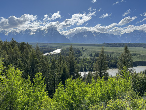 图1:大提顿山脉、蜿蜒的蛇河和平坦宽广的草原