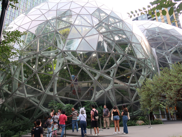 第一天:17:30达美DL282(浦东T1)---- 14:05抵达西雅图(tacoma)。坐轻轨到市区酒店Hilton Motif Seattle寄存行李。参观亚马逊The Spheres(需提前预约)后在Pike Place Market逛逛,晚餐在摩天轮下一餐厅解决。