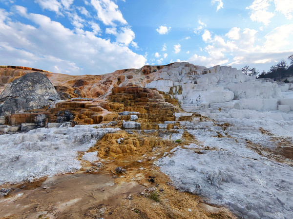 第三天:10:00搭轻轨,乘阿拉斯加航空航班12:26(塔克马机场)---15:09波兹曼(加拉丁机场)租车,午餐加采购,北入口进入黄石公园(127KM)从北入口进公园,游览(Mammoth Hot Springs)。宿北入口附近酒店速8加德纳,