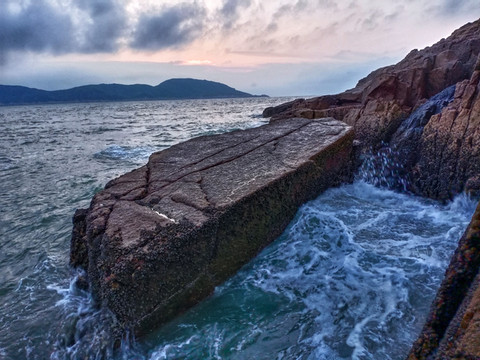 我们转到岛上住下,雨淅淅漓漓地下,就先睡上一觉,吃过晚饭后往海天一角走,看浪花朵朵。