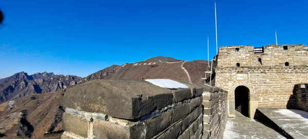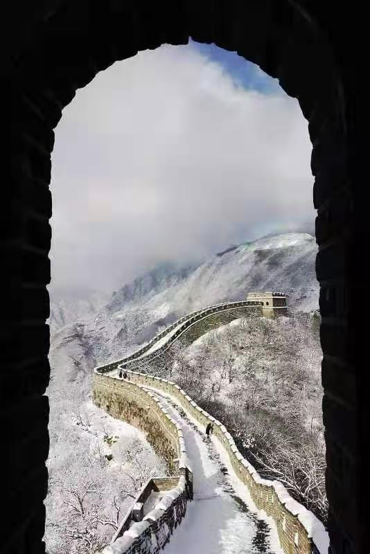 这次看到白白的雪和蓝蓝的天映衬的长城,真是一个大吉大利的好日子呀。我们来得正是时候。