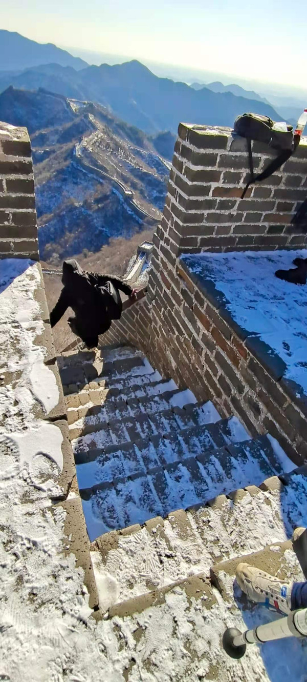 十二月份,下雪的日子,倒是在长城上迎新打卡最好的时刻了。