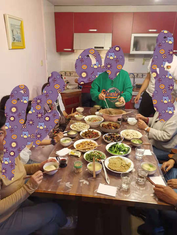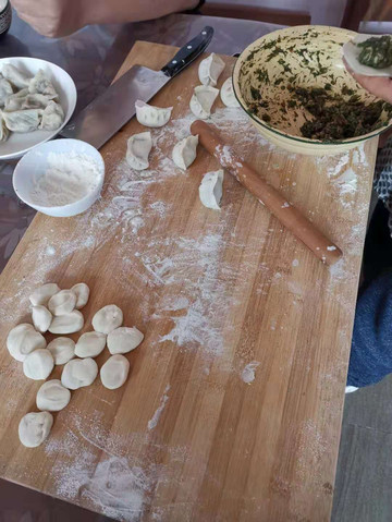 妈妈们准备好午餐了(院里自产的韭菜超赞)。。。。。。