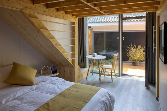 走进众多民居中的棒棒糖小院我眼前一亮,心中的田园牧歌似乎被颠覆,小院在保持原有建筑结构的基础上妙笔生花,中西合璧,几根简洁的线条一改庭院的风格,即时尚又大气,高调中透着惬意,端庄中透着温馨,闲适不失高雅,简约不失奢华。