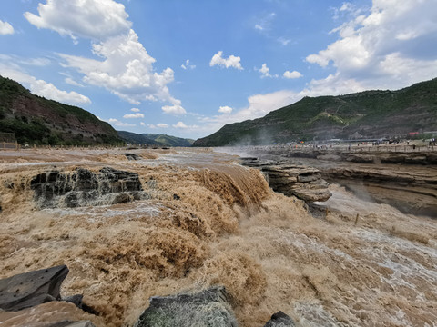 与朋友相约7点出发,一路高速到达沿黄公路,一路欣赏着沿途风景,约3个半小时到达壶口瀑布景区。这里是国家级风景名胜4A级旅游区,国家地质公园。位于陕西省延安市宜川县壶口乡,距陕西西安350千米。中国第二大瀑布,世界上最大的黄色瀑布。气势磅礴、宏伟壮观!在距瀑布约8公里处的游客服务中心,停好车购好票,停车费、门票和景区交通车共计132元。