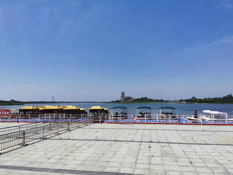 景区位于渭南市蒲城县党睦镇北3公里处(渭清公路西侧),是一个依托水资源优势而建的国家级湿地公园。湖面在关中地区可以用硕大,水天一色、波光荡漾、芦苇摇曳,是水鸟翱翔、栖息、繁衍得天独厚的生态环境,是八百里秦川难得的一处水乡泽国。景区集生态公园、海水浴场、水上宾馆、滨湖住宅为一体,是区域影响力的高科技园区和特色旅游景区,是田园、人居、产业城乡一体化发展的好去处。花50元做一次游艇,在湖面上飞驰,观赏鸟类、岸边景色,在夏季颇感凉爽惬意。