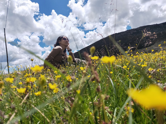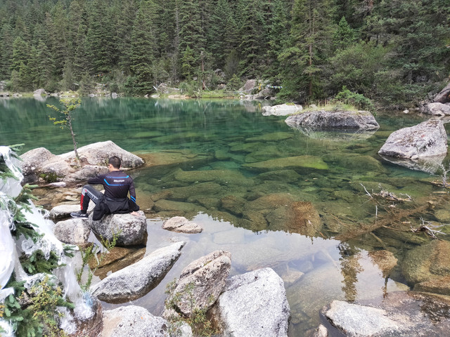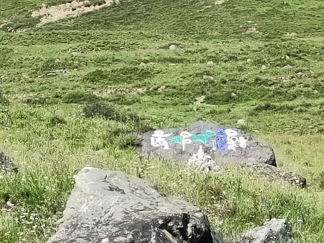 在第一个景时,司机又搭上两位,一位是僧侣。其中一个小伙伴跟着当地村民跑了,由于没信号,约定帐篷处相见。司机介绍去小湖玩,确实方便拍照,不过路上满是大石头,得手脚并用
