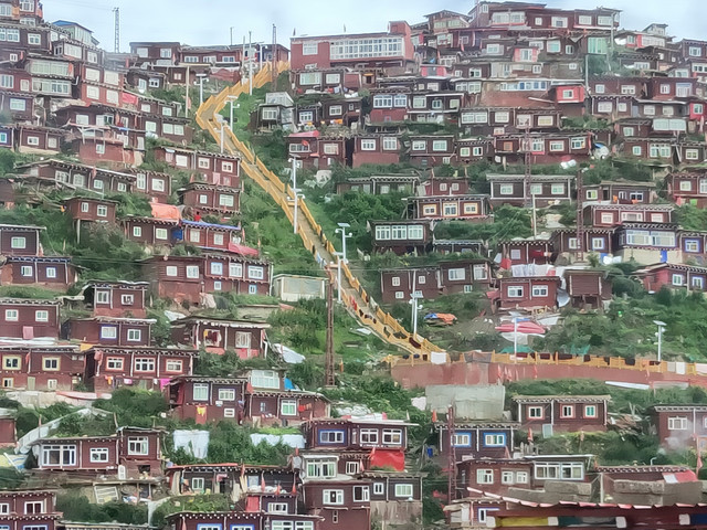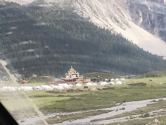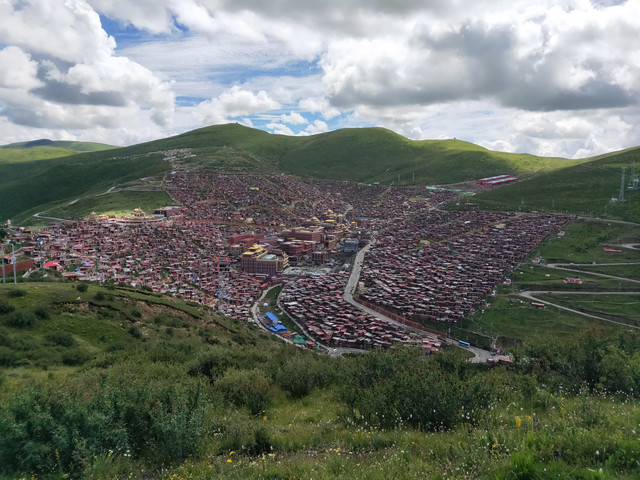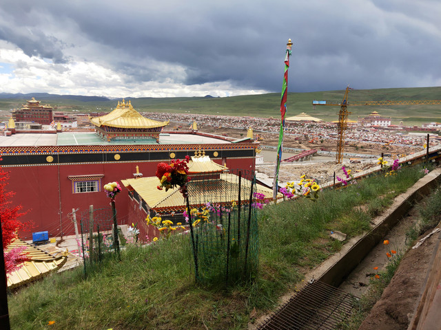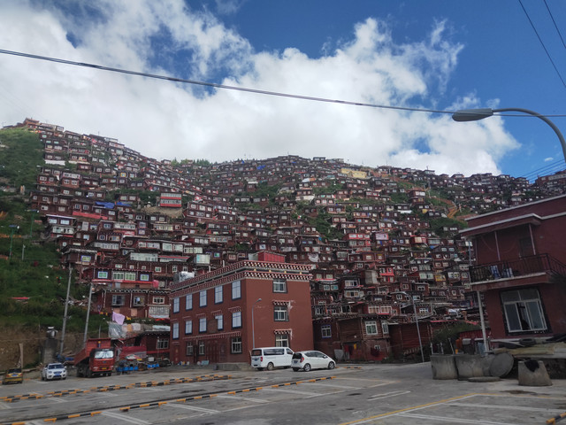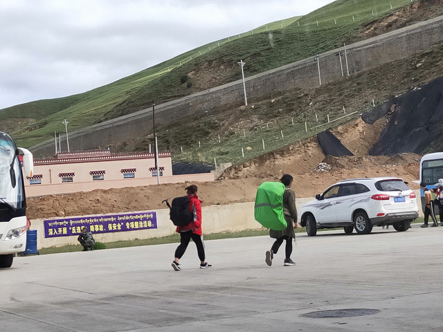 本来想去理塘附近的景点逛,无奈一个人承受不了包车的价格(6~7百),出发客运站买到“甘孜”的车票,运气不错,前两天问还没有呢!同车的两位问要不要一起拼车去色达?我爽快答应。车上有位带着一个小孩,抱着吃奶娃娃的藏族妇女,没一会就开始吐,已经是我必行第二次送纸巾了。邻座的女生和我轮流帮她带了会孩子,终于到站了,吐得已经不会讲“谢谢”了。几番讨价还价,谈妥一个车360元到色达佛学院。中间又是盘山公路,又是下雨。有先头部队在等候,随便找个床铺先住下。