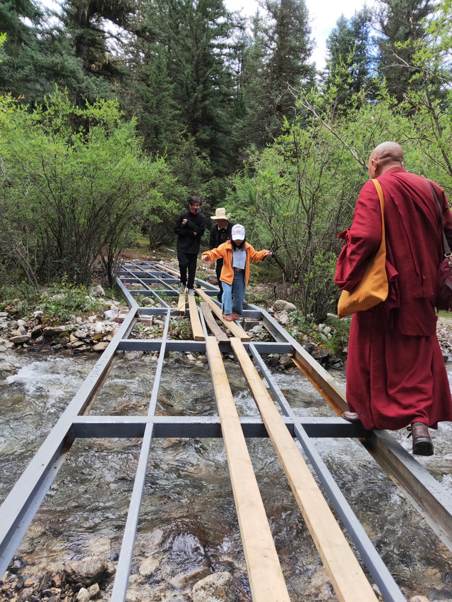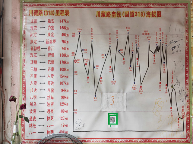 上午和骑行休整一天的几个小伙伴喝茶聊天,同时等司机的消息。那个小女生舍不得我走,本来骑行的女生就少,她自问体力还可以,但是沿途要是有我这种又会讲故事、照顾人、性格还好的大姐姐,旅程一定更棒!其实缘分好奇妙,我本来是到理塘的,因为司机漫天要价,我才一气在巴塘中途下,想去景点,包车又不划算,才会认识他们一伙人。然后客栈的老板娘是同龄人,甚为投机,不仅让我用厨房做心念念的“冒菜”,招待这几位喝茶,在我凌晨和半夜叫门时,也无怨言,只是下次不知能否再次相见。骑行的几个小伙伴还有微信联系,一路可以跟着他们的脚步去到拉萨。