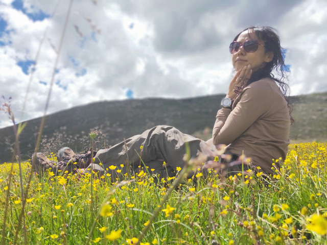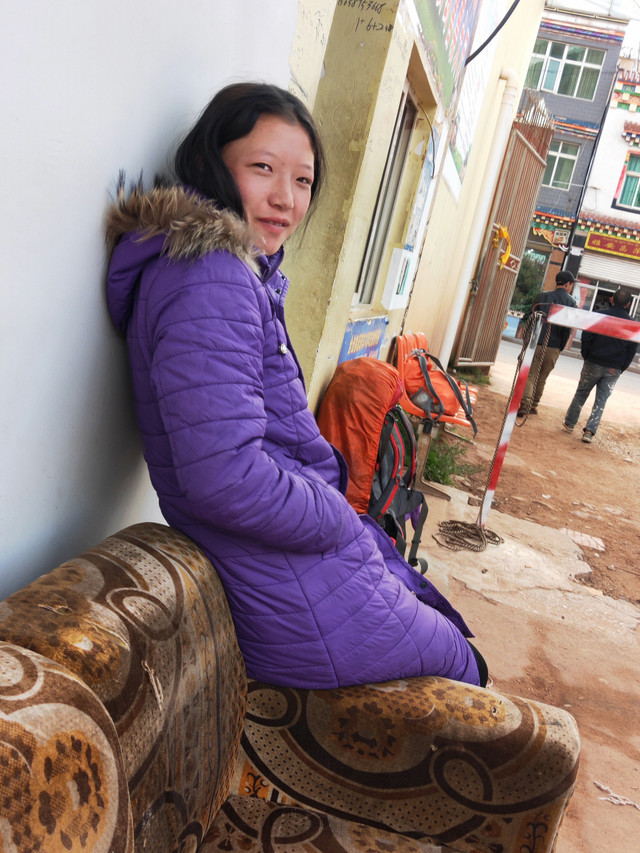 又有奇遇啦!今天重点讲这个不做攻略居然来徒步的女生。其实昨天我在大厅碰到她男友了,还聊了几句,没见到她,估计被冻在被窝里了吧。今早骑行的和去徒步格聂雪山的都陆续出发了,她就很显眼了:围着一条夏天的小围巾,背个城市的小坤包,破洞的牛仔裤露着膝盖和脚脖子。我上前攀谈,问要不要喝茶?她说一会去徒步,我看眼天气预报,才10度,我说你咋不加件衣服呢?她才说并没有带秋裤!我刚才就是在门口坐了会觉得冷才回屋去加衣服的。然后我就给了她一双毛袜子,一个棉帽子,一双毛手套,五六个暖宝宝,她说最想要一条秋裤,我奇怪你一路上觉得冷难道不会买吗?最可气的是她男友是对户外有经验的人呀,除了说“很冷”外,并没有说海拔每上升1000米,温度下降6度的常识。出来把她男友数落一顿