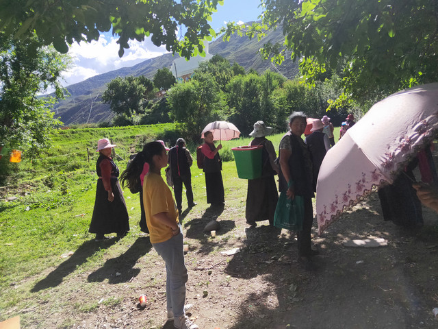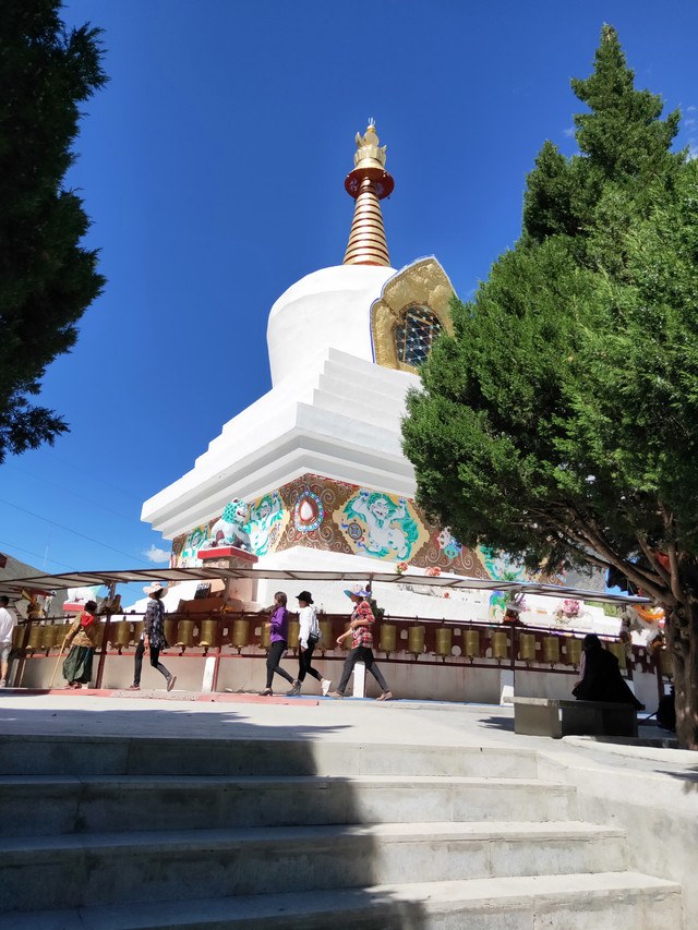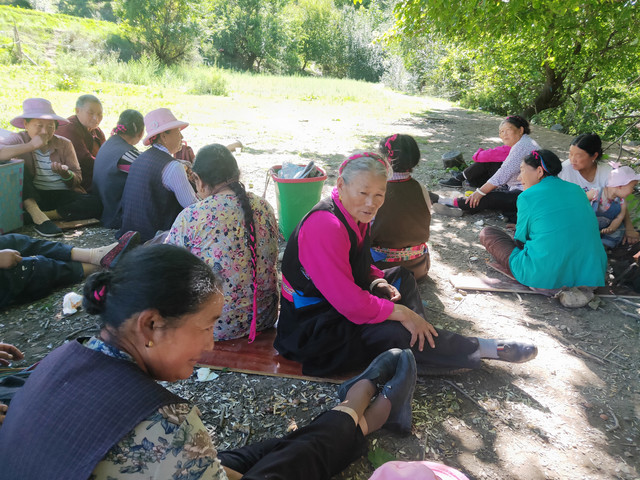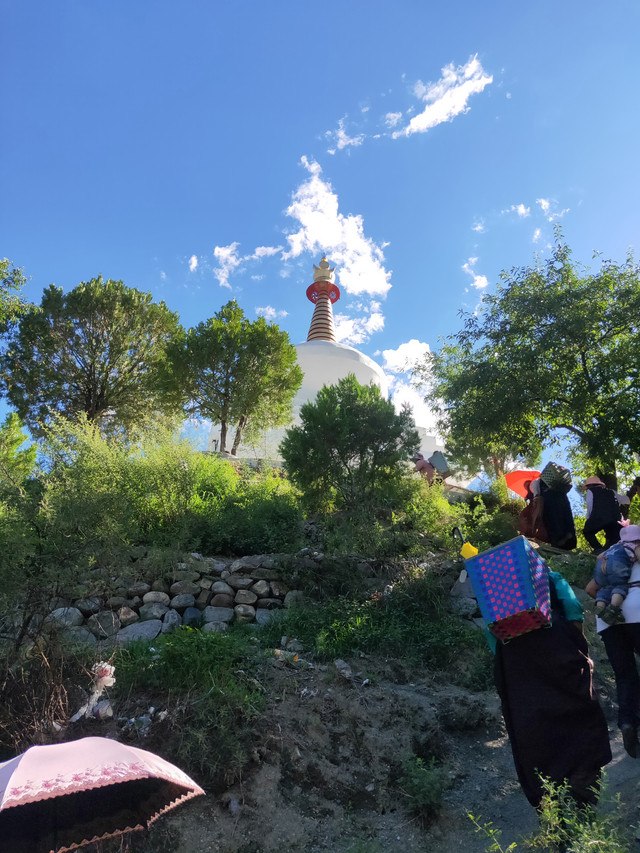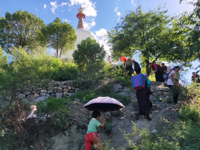 路过白塔,看到一小学生,提着水桶,说是和她们一起的。这二十位妇女,带着孩子,午饭、瓜子(跟我爱好相同)、酥油茶、水果,来这里野餐,真后悔为了逛寺庙,把常背的零食放下了。只有几块糖给了孩子,一个茶包给了招呼我吃水果的妇女。细打听,这次野餐是偶发行为,那我真赶巧了。聊了会天,正好最热的太阳躲过去了,跟着她们转了3圈塔,出发去买菜!