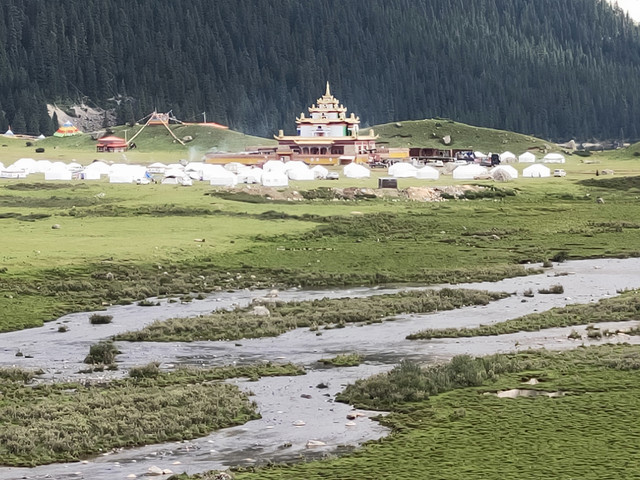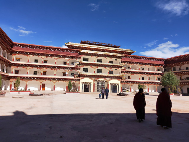 吃完盖饭,出发最近的一个寺,我和小伙伴走进黑漆漆的大殿,请示后开始参观。好几座缀满宝石的塔。今天我们正式分道扬镳,他去拉萨,我取道理塘(巴塘)奔四川,便把在拉萨玩的几个寺的规矩告知他。此时全是每天朝圣的民众,搭我们来的司机,也和我们一起转圈呢。出来后逛菜市场,物价比拉萨还高(我在拉萨还买过4元一斤的梨子呢),估计我得等到成都后再吃水果了,幸好带了茶叶。回客运站宾馆时,我就散步的节奏,屡次叫伙伴慢点,难怪,谁让我和他妈岁数一样大呢?我给他讲往昔旅行的见闻。