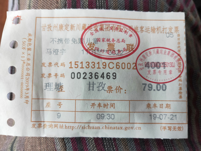 坐上来往成都的豪华大巴,本来我觉得这司机只是说话大声点,还好心帮他念电话,没想到上车前说好的理塘150,过了会,让我缴175。怎么还涨价啦?气得我在巴塘就下了,别想赚我钱!有个姑娘上车就吐,又开始送糖送纸巾。大巴有USB接口,却放着“张智霖”演的“陆小凤”,快20年了吧。我手机有今年的新片子,可惜看不到