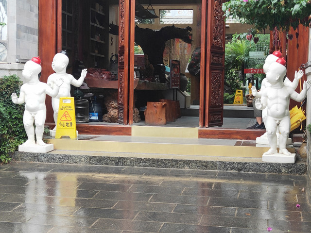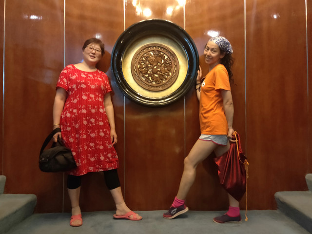 在加油站等待时,说有青旅,30一张床,就拉行李过去。先把厚衣服整个换下来(昨天还穿着羽绒服),准备去附近一个寺庙。本来想学大神搭车的,站得都快晒化了,也没车停下来,遂走路。看到路边有新修的木栈道,在淌树胶,看到一队妇女在喝茶,就打了招呼,拐弯去找她们。