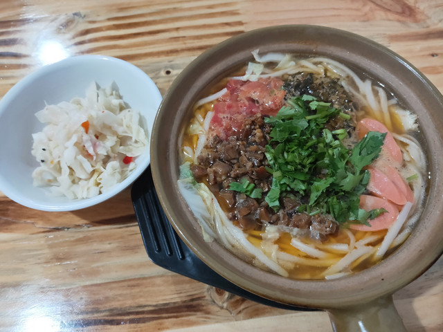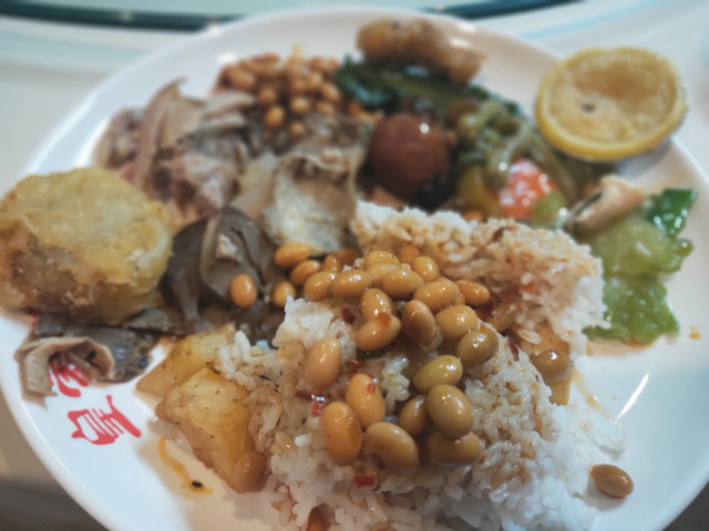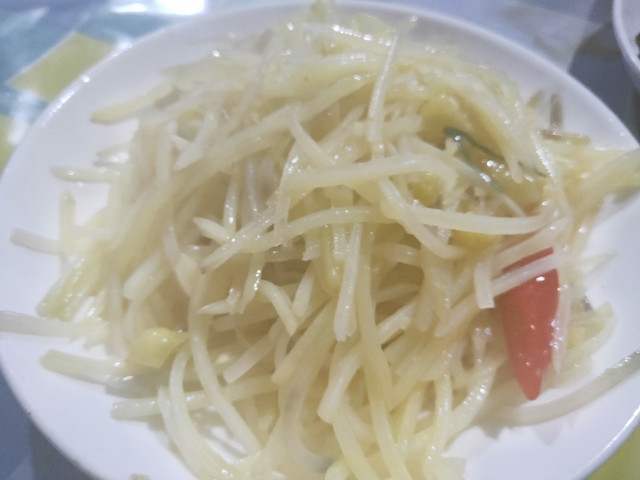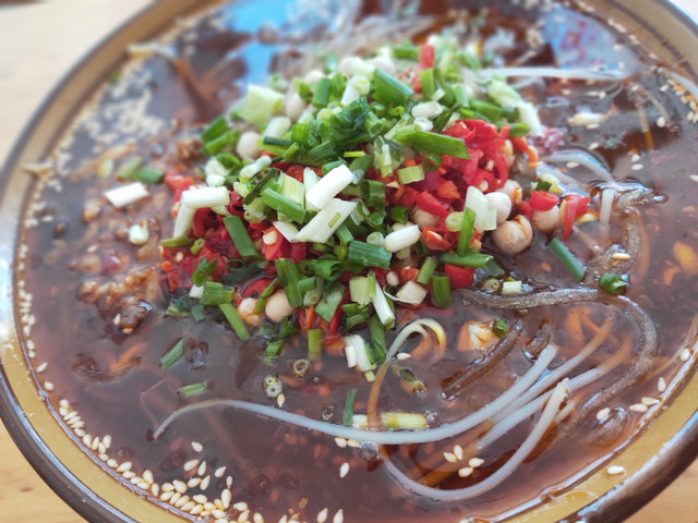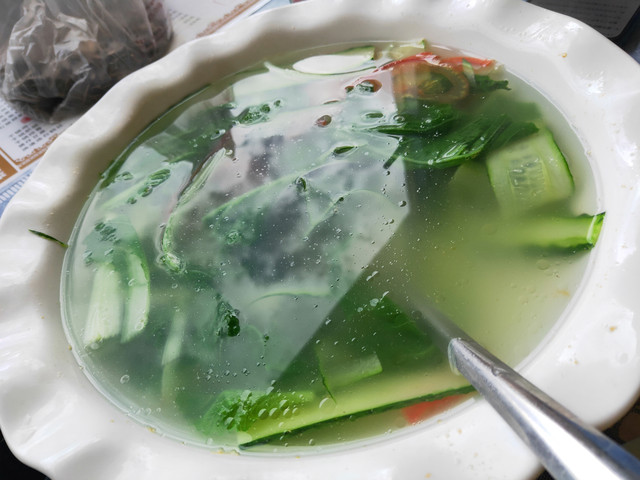 本来说是今天不含餐,却没说没饭馆,之前等车时,还买了超高价“自热米饭”,我准备把盒饭留到回家火车上吃,还是先解馋吧,不知道小份“酸辣粉”这么大量,还点了份青菜。