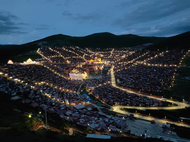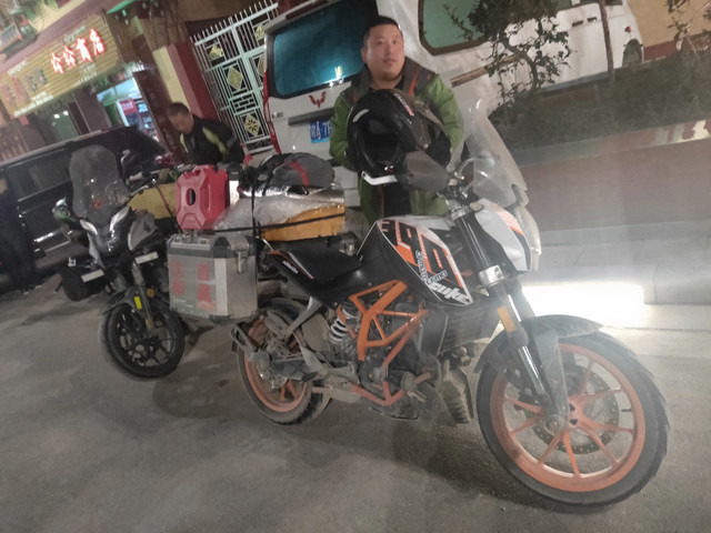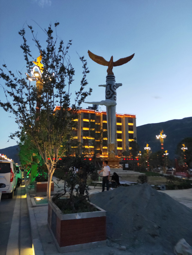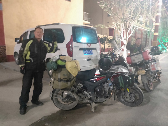 巴塘市中心夜景广场,今晨我在等车时,看到摩托进藏的两位勇士,征得同意后留影,只是路灯太亮,影响效果