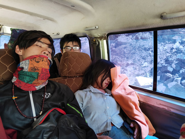 昨天半夜确认拼车的消息,那会我已经睡了,4点起,按照约定时间去等,结果司机没来,在寒风中等半小时,移步某宾馆,快一小时,实在熬不住了,回到客栈才接到司机电话。急忙拿两件衣服,所以说“塞翁失马焉知非福”,我要不是外面被冻,按照昨天巴塘的温度~32度穿衣服,今天绝对会被冻惨。