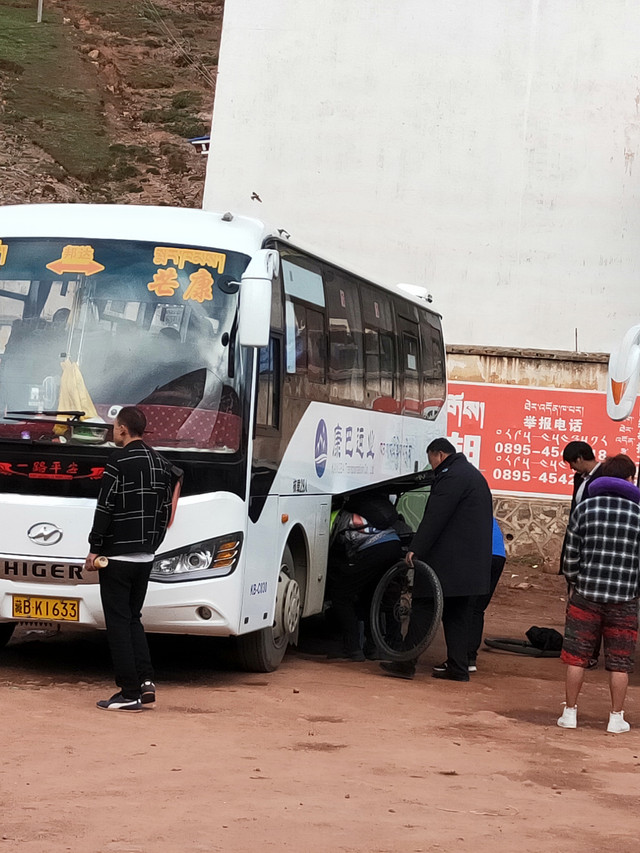 刚开通的芒康来往成都的大巴,司机说话带有浓郁的口音。刚才闲着等车开时,我还问他有没有高原反应,他说有,就给他吸了几口氧。我帮他念电话号码,都是要去成都的人。