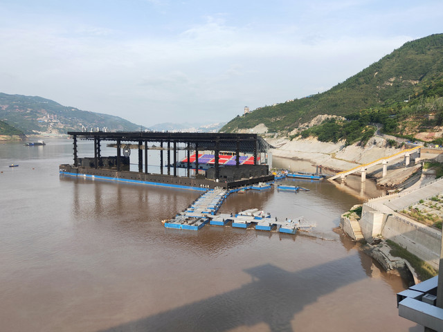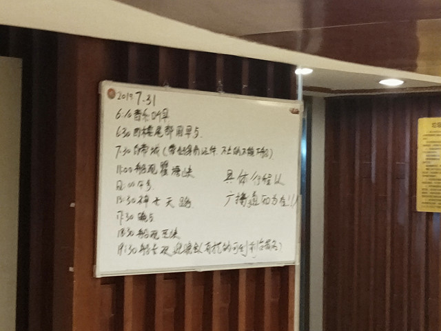 第十二站~长江三峡终点宜昌:原定两点,后来耽误了半个多小时船才靠岸,坐了电梯上去,两元一位。然后大巴车我们去安检,不能带酒和刀具,出来搭原车,再全程转了4趟扶梯,去往最高处“坛子山”,看全景,赶上“泄洪”,好幸运!又加电瓶车10元,才到最壮观的大坝。中间我就感觉要中暑了,洗了把脸,拿风油精点了。上大巴空调车,才活了回来。以后还是不要在三伏天出游了,保命要紧!大巴送回市区,在万达广场解决晚饭