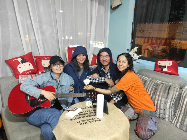 前几天太清净,忽闻今日“满房”,赶紧收拾行李腾地儿。之前我睡的是“帐篷房”,因为第一次,还蛮新鲜的。下午来了这个会弹吉他的“美眉”,帅哥连忙攀交情,就有了下午的弹唱。