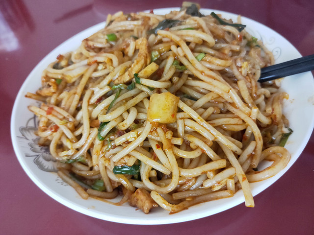 中午和青旅的老板一起吃了顿面条,对细面和高原做饭没有经验,中午的面条真是“乏善可陈”,许诺晚饭改善