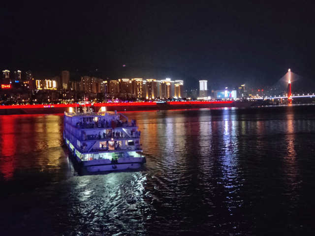 第十一站~长江三峡第三站:昨天伴随着歌舞演出,缤纷闪电 纷沓而来。我好像拍了大概30条视频,几乎每个都有闪电。天渐渐黑了,远处出现“巴东欢迎你”,同船的旅客说,“这个地方好富呀”!因为在大桥上的灯光秀,也不断变换着图案,感恩我为了拍闪电 ,而全程都看到了!图89有没有看到分界线?听说渤海和黄海交界处,也有“分界奇观”,好期待,估计得等我环游世界完了以后再国内游啦。图5是,大家都出舱看风景了,这位孤独的小帅哥