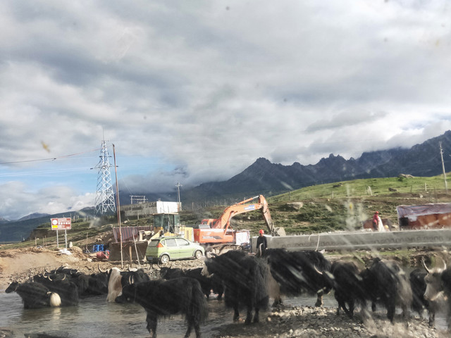 一早阴冷,泡了姜茶,好在后来就出太阳了。过4000时,不得以吸氧了。这大巴司机帮摩托车修理部带蓄电池,收费百元,怪不得这里物价这么贵