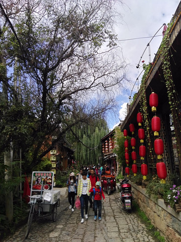第四天7月31日,计划游览丽江古城。来了好几天,还没有游玩丽江古城,今天应该去看看了,早上吃过早饭,计划在门口乘坐6路公交车,节省点费用,可连等了2班6路车,驾驶员都不带,约1个多小时,问了当地人,听了当地人的回答,差点没气晕,这里上车的人少,看你是旅游的,就让你做的士,让你多花钱,没办法只好打车,打车不好打,只有花流量叫滴滴快车,这速度很快,2分钟有有车来了,坐上车,定位好,丽江古城南门(听说这个门有一段不需要古城建设维护费用,可以自由行,为了节省80元/人的费用,只好选择这里。另外不是舍不得花,因为觉得这个钱花的实在是不值,晚上6点工作人员下班了,就不要了),服务态度很好,驾驶员也陪你聊天,我打开了高德地图一直看,很快我就发现了猫腻,这个驾驶员不走寻常路,从外围迂回绕,费用也快超过20元了,我就说,你这么不按常规路线走,他说,那里堵车,不好走,我就说,我来了好几次了,路程也熟悉,这家伙是个老手,明感到理亏,但也很镇静,就是说节省你们时间,我看滴滴快车的费用都30元了,随手拦车一口价也就这费用,我说你不能这样了,他脸上瞬间也变了,变成了魔怪的表情,本身这里的人皮肤都黑,后来看到古城门口了,我们就下车了,所以建议大家不要在古城打滴滴快车,除非你要说明路线,否则建议一口价。古城很大,不愧是闻名全国的古城,国家5个炸(AAAAA)景区,丽江古城又名大研镇,始建于宋末元初(公元13世纪后期),古城地处云贵高原,全城面积达3.8平方公里。是第二批被批准的中国历史文化名城之一,也是中国仅有的以整座古城申报世界文化遗产获得成功的两座古城之一。丽江古城有着绚丽多彩的地方民族习俗和娱乐活动,纳西古乐、东巴仪式、占卜文化、古镇酒吧以及纳西族火把节等,别具一格。丽江古城充分体现了中国古代城市建设的成就,是中国民居中具有鲜明特色和风格的类型之一。我们从南门进入,刚开始一段不需要出示古城维护费票,但进入800米后,各个入口就有专人把守,需要古城建设维护费才可以进入。来时我在百度搜索一下,听说在古忠义菜市场有门进入,果然不错,从菜市场里面的门顺利进入,开始游览,关于古城建设维护费,只有到木府、玉龙雪山等景点需要,其他地方可以不用。晚上打车回束河古镇吃饭休息,为了能吃到在香格里拉的牦牛肉火锅,在束河古镇一家不错的小店,也吃到了正宗的牦牛肉火锅,味道也不错。