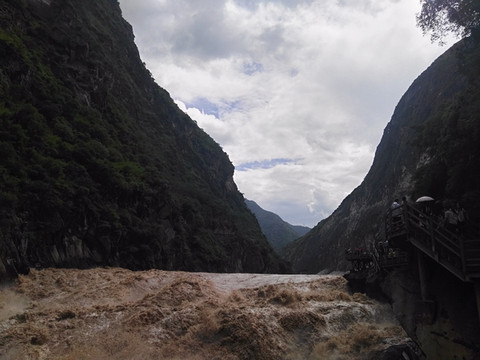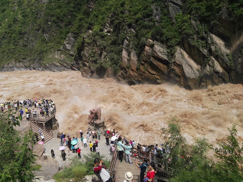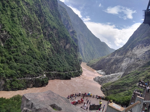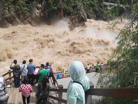 很快就到达虎跳峡景区附近。这是到达虎跳峡景区门口排队进入