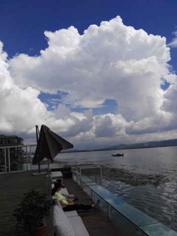 第五天8月1日,这天是建军节,感觉很有纪念意义。我们计划去“下关风,上关花,苍山雪,洱海月”之称的大理,大理四景构成了浪漫了“风花雪月”的主线。白族人民世代繁衍生息于此,这里也是历史上大理国和南诏国的所在,金庸笔下的段氏家族的故居,滇藏线的起点。美丽的故事、悠久的历史并不能掩盖大理旅游的乱象。我们选择了乘坐火车,体验一下在云滇乘火车的感觉,我们打车去火车站,距离我们住所束河古镇约17公里,包车60元,丽江火车站和丽江一样也很美丽。中午到了大理,下了火车,我们选择了去大理的喜洲古镇,并预定了洱海边上的酒店海景房,2米大床房,价格为475元/日,含早餐。安顿下来后,在酒店后院,欣赏洱海边风景,傍晚时分,我们租了一辆三人骑行的电动车,能骑行50KM,15元一个小时,沿环海公里骑行,去喜洲和海舌公园,喜洲古镇,那些充满着水墨情调的民居群落,全都整齐地坐落在古老的石头巷子两边。每一个院落的布排,都力求做到自然、贴切,讲究的一种儒雅的格调,共有明代、清代、民国以及当代各个时期各具特色的上百院白族民居建筑,我们一边逛,一边品尝当地美食,有喜洲破酥粑粑,老奶奶自制冰棍等有名小吃,在喜洲一家有特色的饭店吃完饭,沿途21点返回酒店休息。